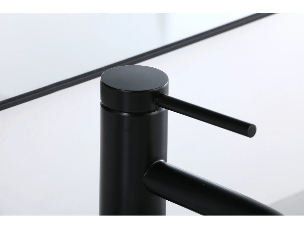 CERANO - Bateria umywalkowa Selma na postumencie - niska - matowa czerń
