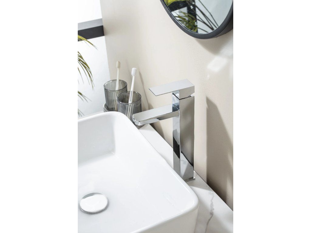CERANO - Bateria umywalkowa stojąca Elma - wysoka - chrom