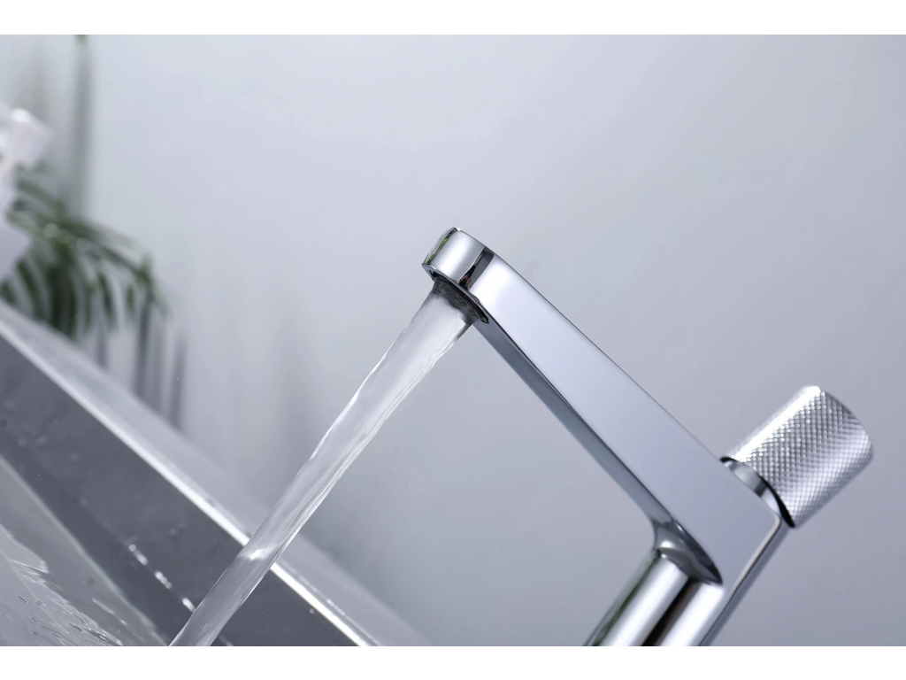 CERANO - Bateria umywalkowa stojąca Loreta Grip - wysoka - chrom