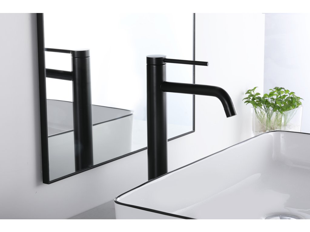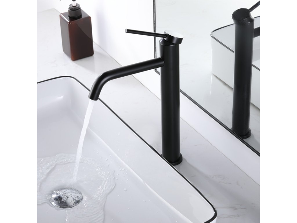 NIORO - Bateria umywalkowa Selma na postumencie - wysoka - matowa czerń