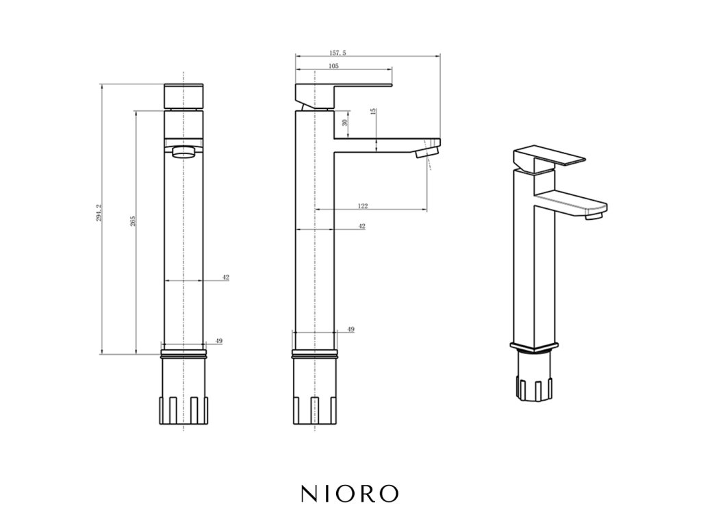 NIORO - Elma bateria umywalkowa stojąca - wysoka - chrom