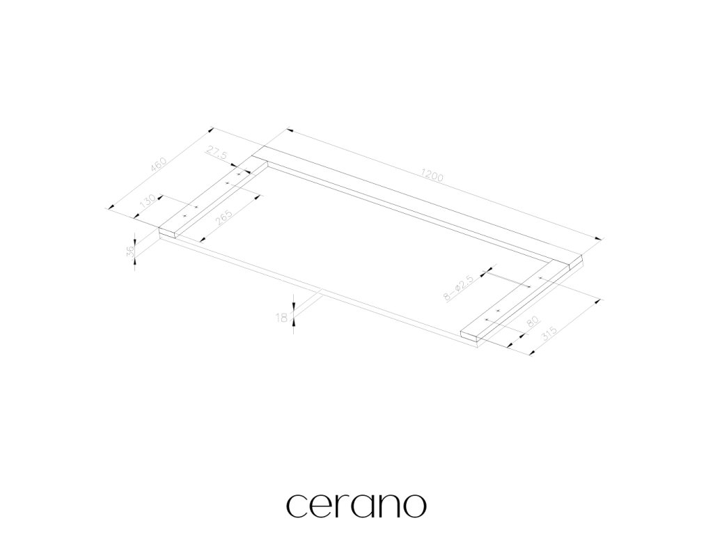 CERANO - Blat umywalkowy Navira Pro - szary beton - 120x46x3,6 cm