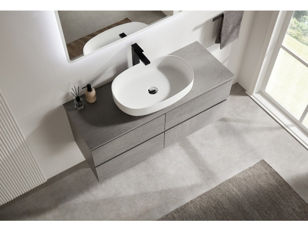 CERANO - Blat umywalkowy Navira Slim - szary beton - 161x46,5x1,8 cm