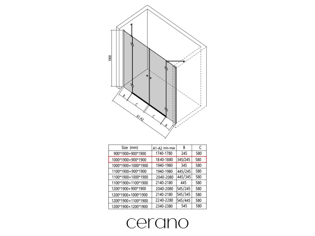 W ramach tej serii oferujemy szeroki wybór wymiarów, aby sprostać zróżnicowanym potrzebom naszych klientów. Wszystkie kabiny prysznicowe, drzwi i parawany CERANO są w pełni kompatybilne z brodzikami CERANO o tych samych wymiarach, co zapewnia bezproblemowy montaż i idealne dopasowanie. Ponadto kabinę można elastycznie zamontować – na pasującym brodziku lub bezpośrednio na podłodze, w zależności od preferencji i wyposażenia łazienki.
