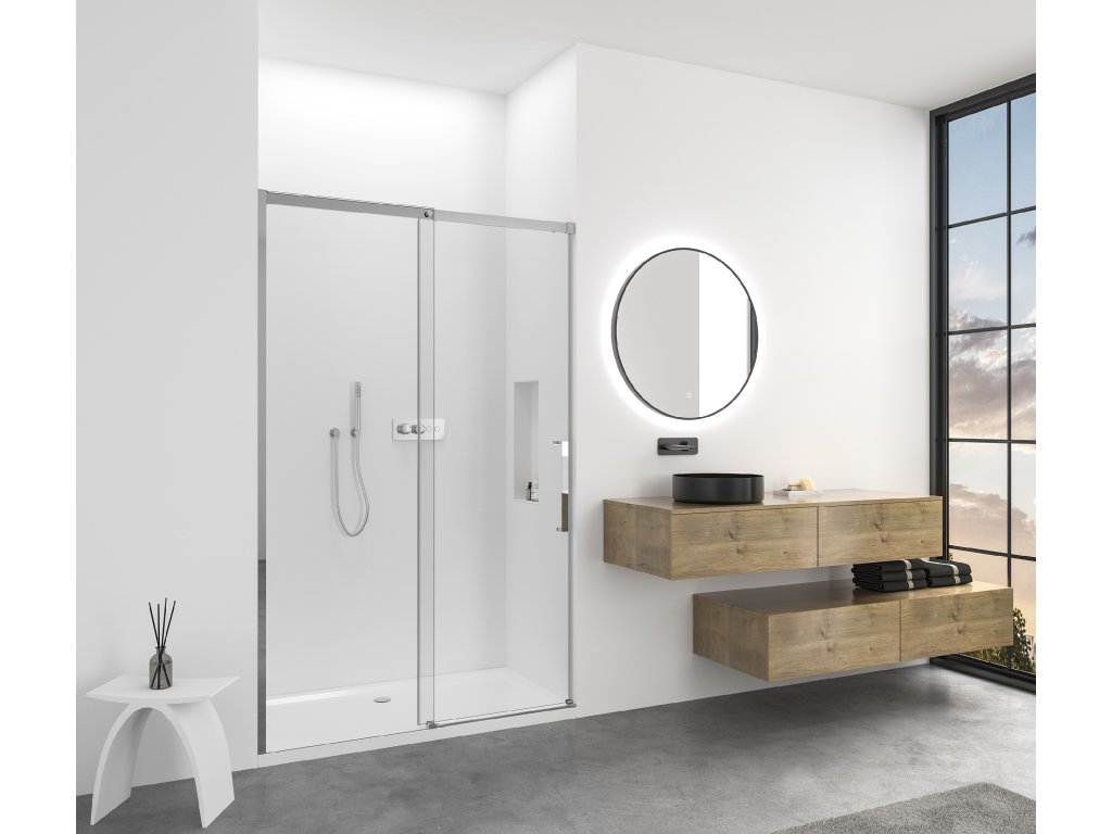CERANO - Drzwi prysznicowe przesuwne Lantono L/P - 8 mm - Soft-Close - chrom, szkło transparentne - 100x195 cm