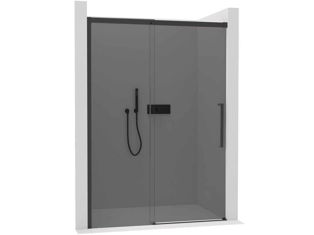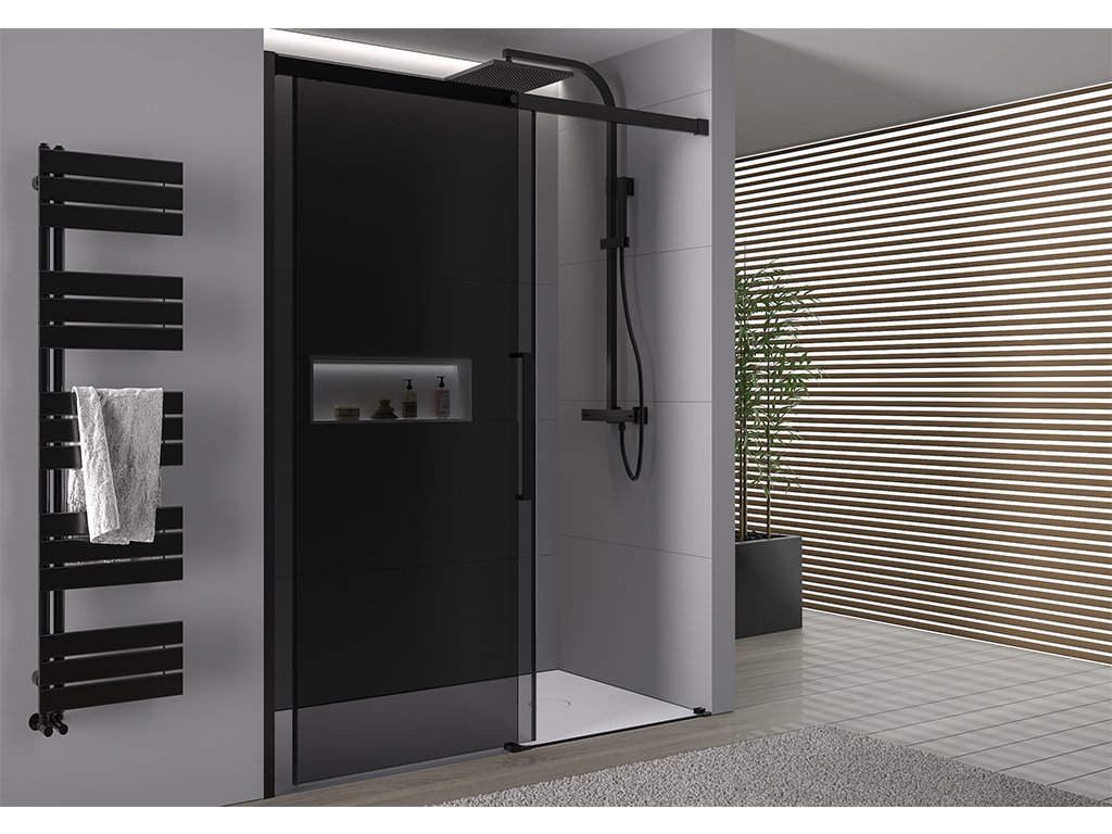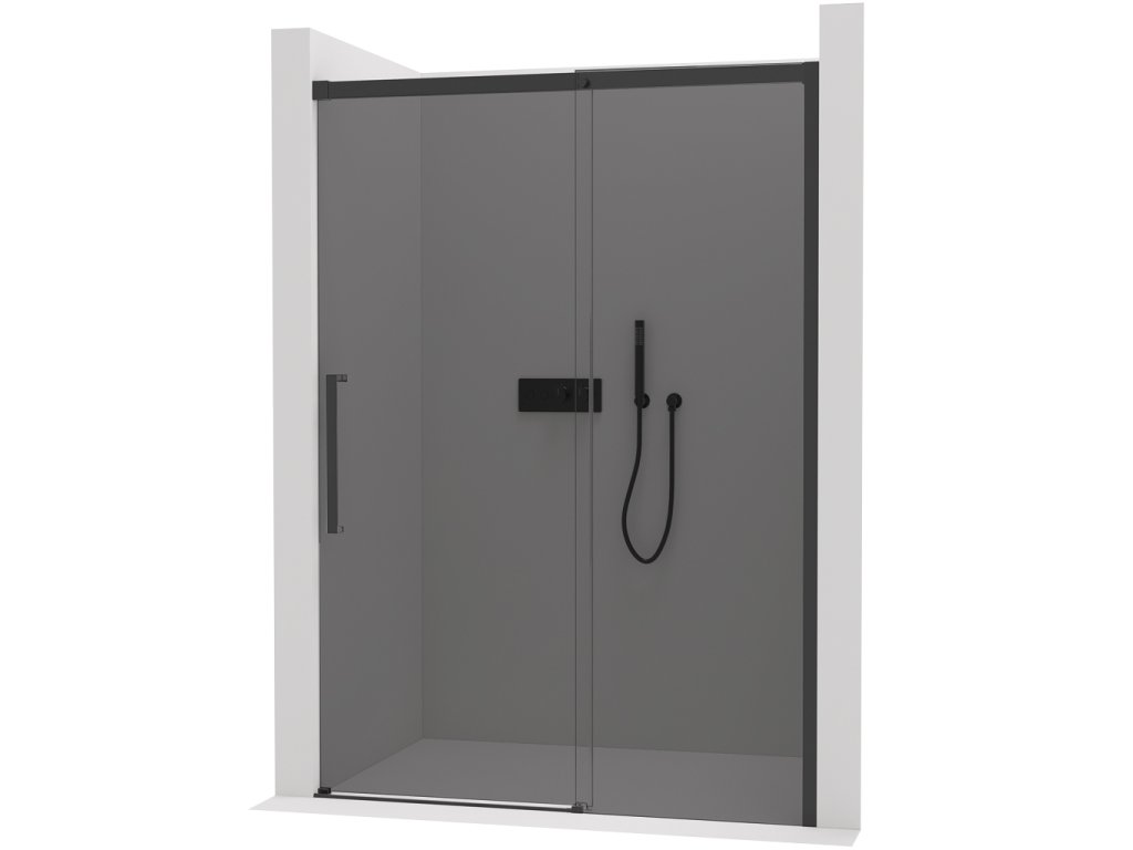 CERANO - Drzwi prysznicowe przesuwne Lantono L/P - 8 mm - Soft-Close - matowa czerń, szkło grafitowe - 100x195 cm