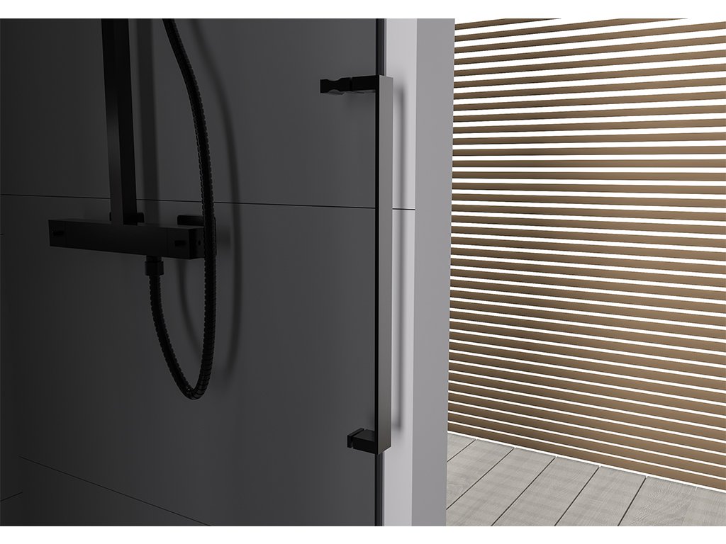 Elegancki metalowy uchwyt, łączący praktyczność z nowoczesnym designem, wykonany z wysokiej jakości metalu, uzupełniony trwałym wykończeniem powierzchni, nie tylko gwarantuje wygodne użytkowanie, ale także harmonijnie uzupełnia ogólny styl kabiny prysznicowej.