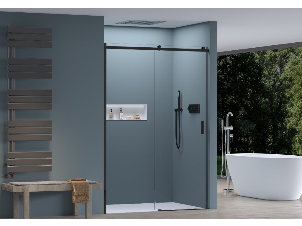 CERANO - Drzwi prysznicowe przesuwne Santoro L/P - 6 mm - matowa czerń, szkło transparentne - 100x195 cm