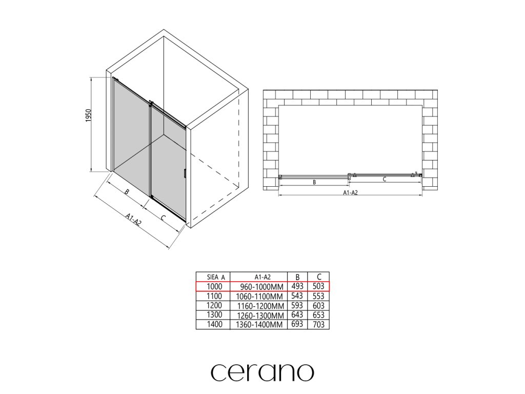 W ramach tej serii oferujemy szeroki wybór wymiarów, aby sprostać zróżnicowanym potrzebom naszych klientów. Wszystkie kabiny prysznicowe, drzwi i parawany CERANO są w pełni kompatybilne z brodzikami CERANO o tych samych wymiarach, co zapewnia bezproblemowy montaż i idealne dopasowanie. Ponadto kabinę można elastycznie zamontować – na pasującym brodziku lub bezpośrednio na podłodze, w zależności od preferencji i wyposażenia łazienki.