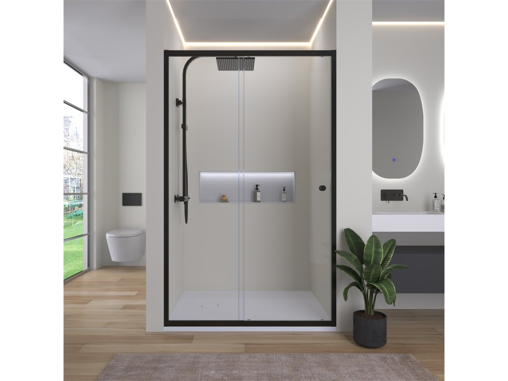 CERANO - Drzwi prysznicowe przesuwne Varone POINT L/P - 6 mm - matowa czerń, szkło transparentne - 100x195 cm