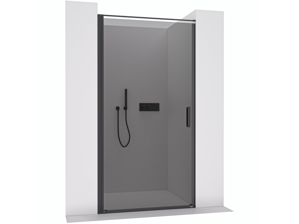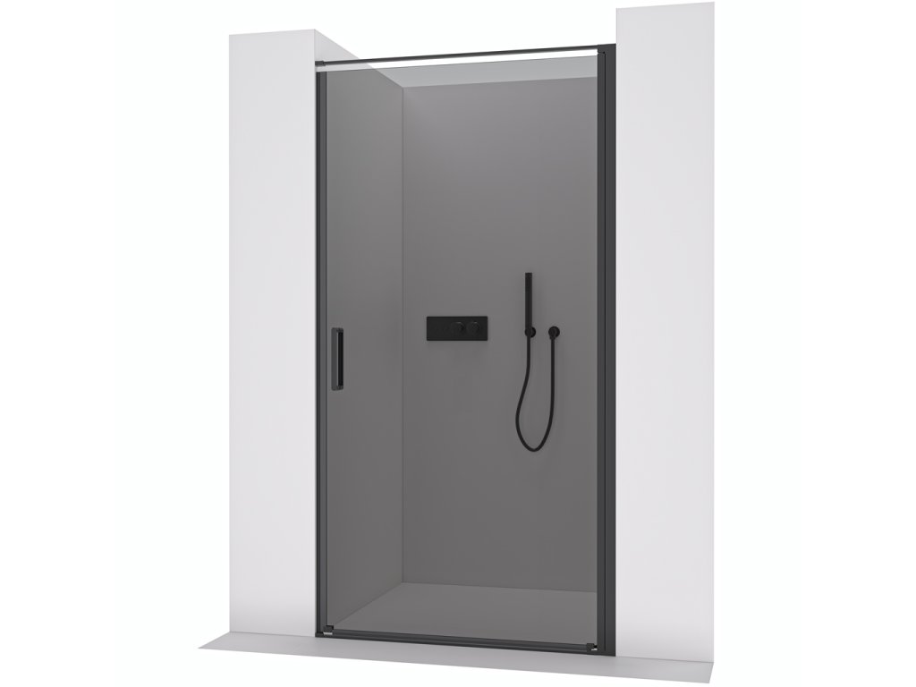 CERANO - Drzwi prysznicowe zawiasowe Porte L/R - 8 mm - matowa czerń, szkło grafitowe - 100x195 cm