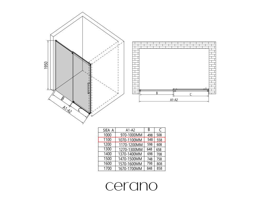 W ramach tej serii oferujemy szeroki wybór wymiarów, aby sprostać zróżnicowanym potrzebom naszych klientów. Wszystkie kabiny prysznicowe, drzwi i parawany CERANO są w pełni kompatybilne z brodzikami CERANO o tych samych wymiarach, co zapewnia bezproblemowy montaż i idealne dopasowanie. Ponadto kabinę można elastycznie zamontować – na pasującym brodziku lub bezpośrednio na podłodze, w zależności od preferencji i wyposażenia łazienki.