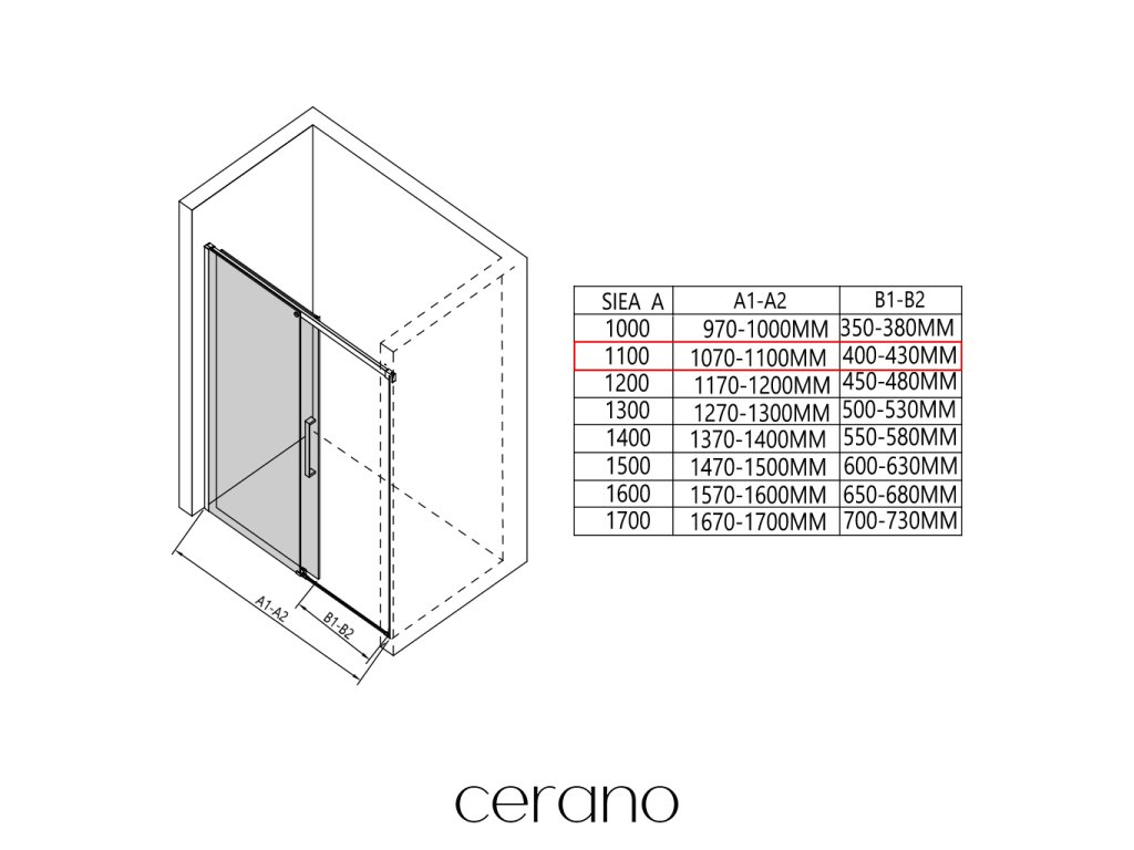 W ramach tej serii oferujemy szeroki wybór wymiarów, aby sprostać zróżnicowanym potrzebom naszych klientów. Wszystkie kabiny prysznicowe, drzwi i parawany CERANO są w pełni kompatybilne z brodzikami CERANO o tych samych wymiarach, co zapewnia bezproblemowy montaż i idealne dopasowanie. Ponadto kabinę można elastycznie zamontować – na pasującym brodziku lub bezpośrednio na podłodze, w zależności od preferencji i wyposażenia łazienki.