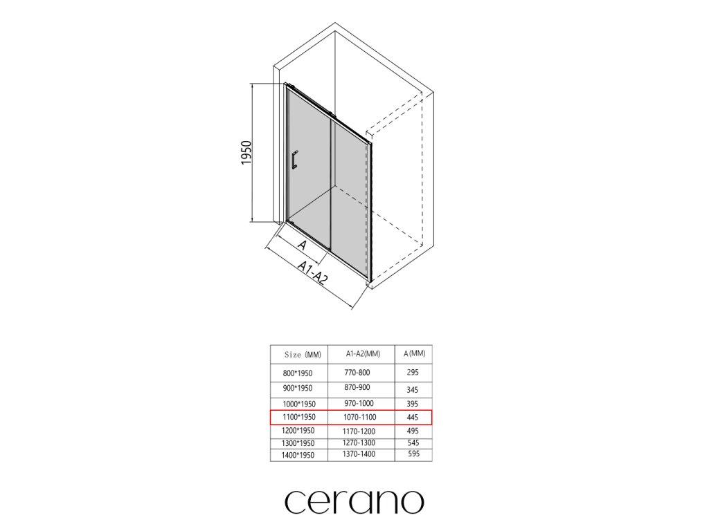 CERANO - Drzwi prysznicowe przesuwne Orlano L/P - 5 mm - matowa czerń, szkło transparentne - 110x195 cm