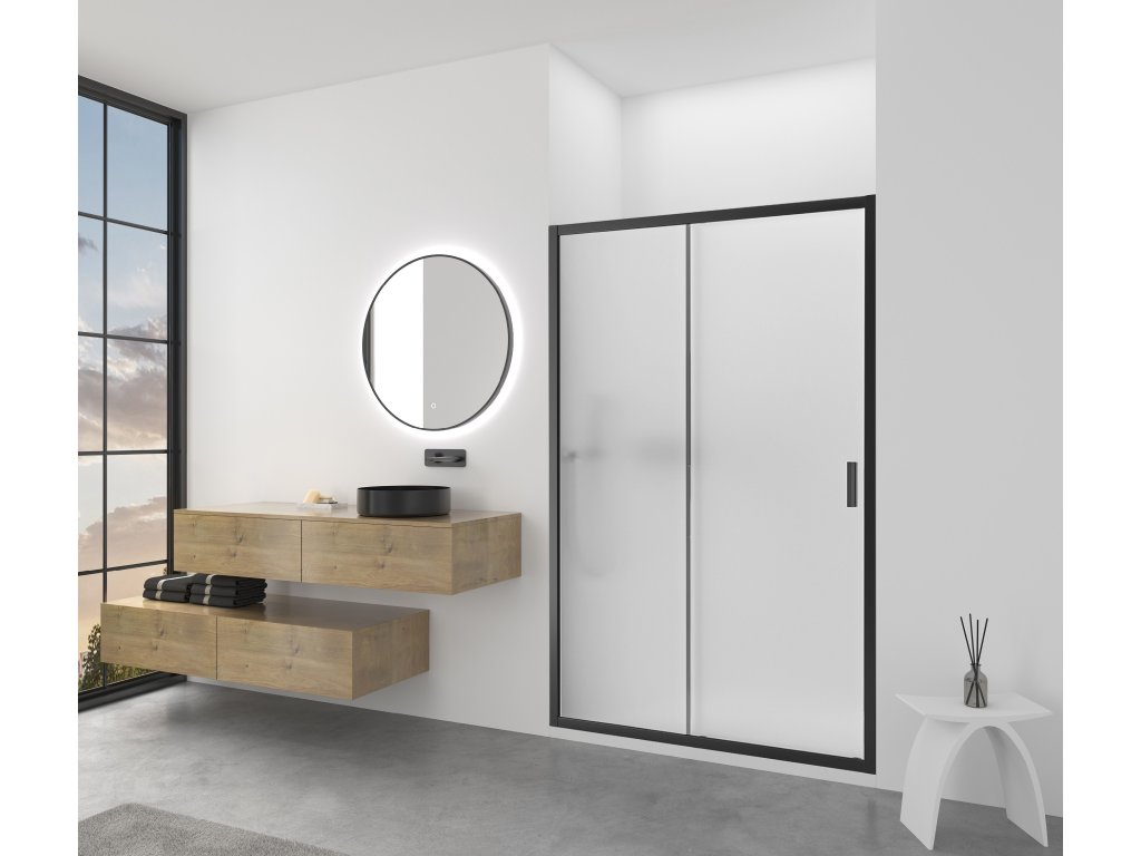 CERANO - Drzwi prysznicowe przesuwne Varone LINE L/R - 6 mm - matowa czerń, szkło mrożone - 110x195 cm