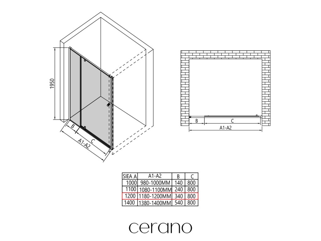W ramach tej serii oferujemy szeroki wybór wymiarów, aby sprostać zróżnicowanym potrzebom naszych klientów. Wszystkie kabiny prysznicowe, drzwi i parawany CERANO są w pełni kompatybilne z brodzikami CERANO o tych samych wymiarach, co zapewnia bezproblemowy montaż i idealne dopasowanie. Ponadto kabinę można elastycznie zamontować – na pasującym brodziku lub bezpośrednio na podłodze, w zależności od preferencji i wyposażenia łazienki.