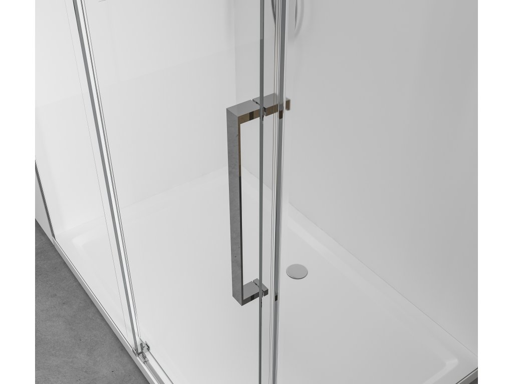 Elegancki metalowy uchwyt, łączący praktyczność z nowoczesnym designem, wykonany z wysokiej jakości metalu, uzupełniony trwałym wykończeniem powierzchni, nie tylko gwarantuje wygodne użytkowanie, ale także harmonijnie uzupełnia ogólny styl kabiny prysznicowej.