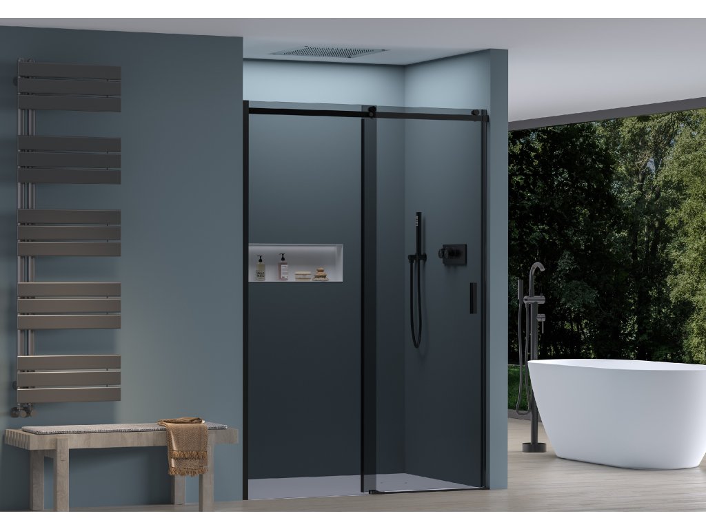CERANO - Drzwi prysznicowe przesuwne Santoro L/P - 6 mm - matowa czerń, szkło grafitowe - 120x195 cm