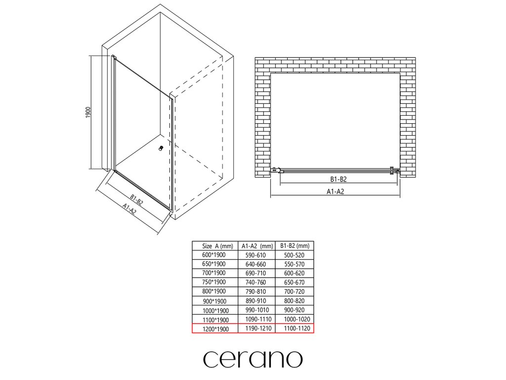W ramach tej serii oferujemy szeroki wybór wymiarów, aby sprostać zróżnicowanym potrzebom naszych klientów. Wszystkie kabiny prysznicowe, drzwi i parawany CERANO są w pełni kompatybilne z brodzikami CERANO o tych samych wymiarach, co zapewnia bezproblemowy montaż i idealną koordynację.