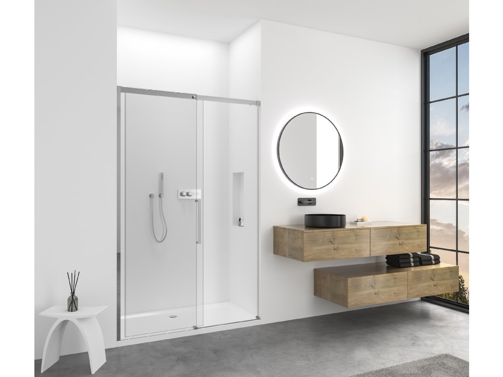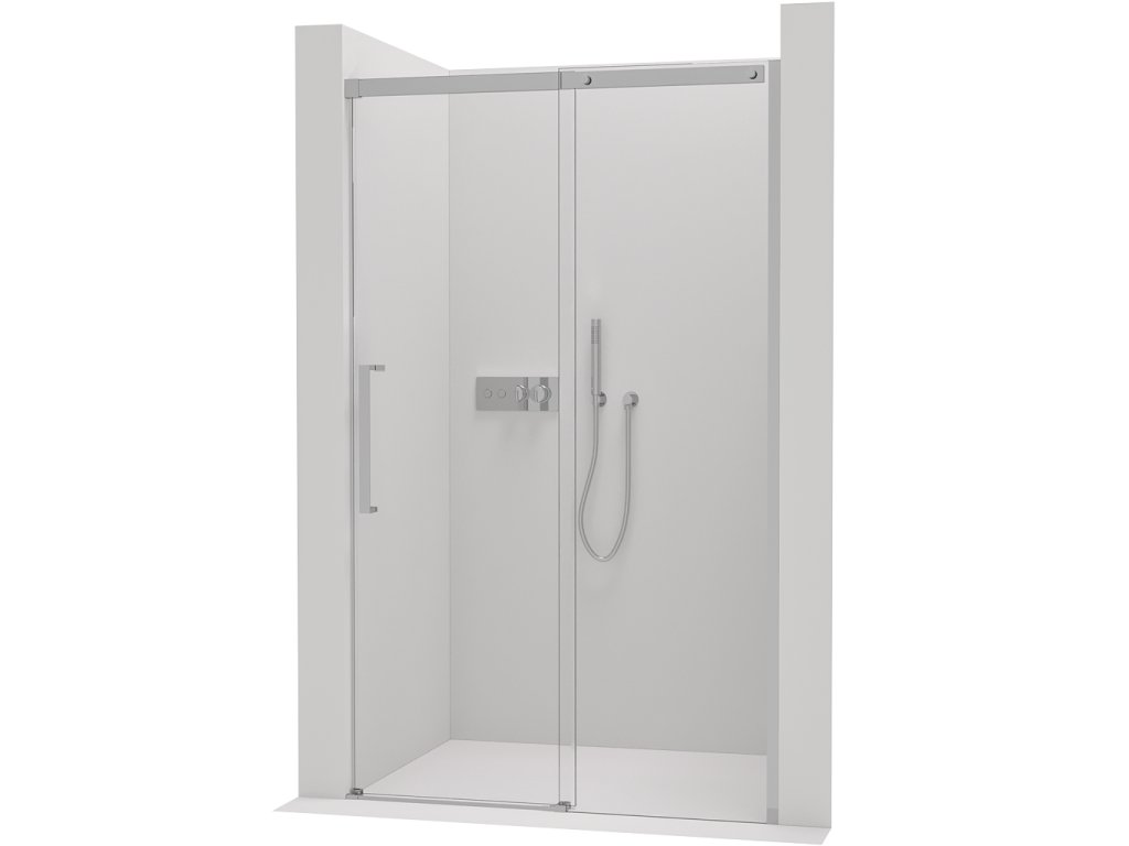 CERANO - Drzwi prysznicowe przesuwne Lantono L/P - 8 mm - Soft-Close - chrom, szkło transparentne - 130x195 cm