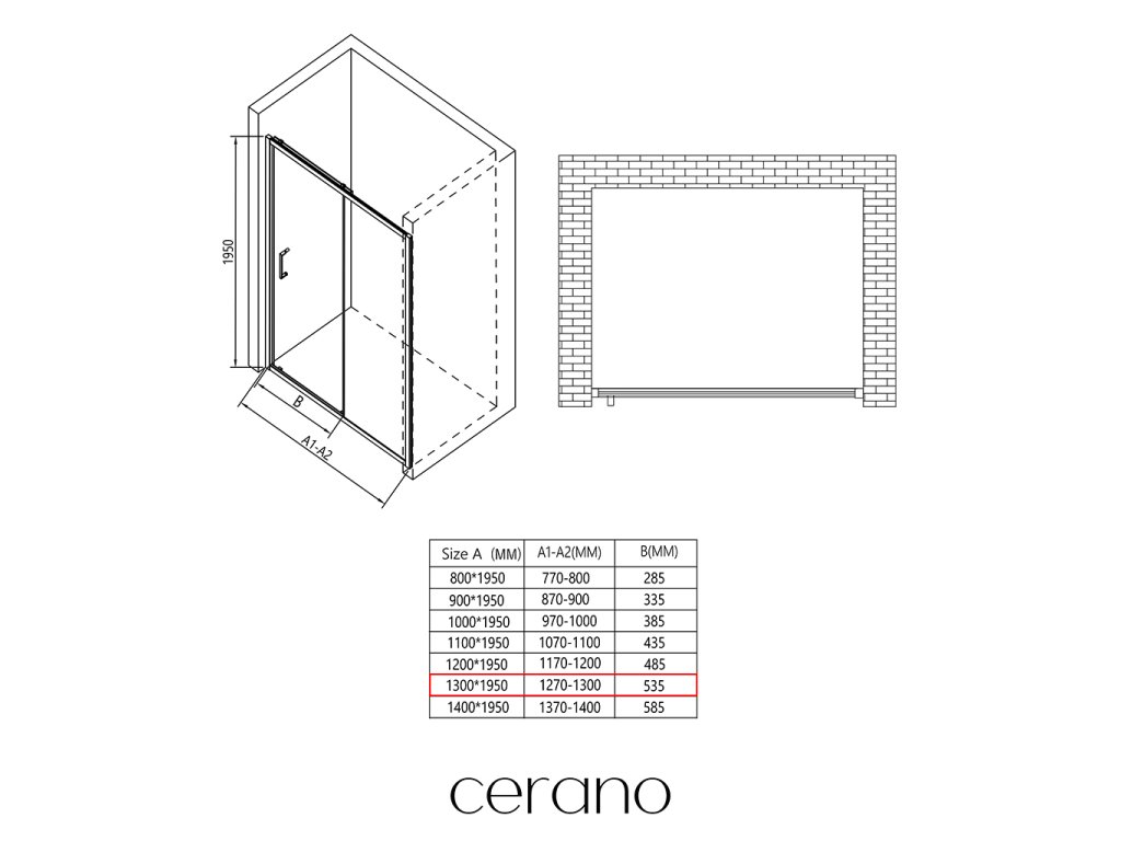 CERANO - Drzwi prysznicowe przesuwne Orlano L/P - 5 mm - matowa czerń, szkło transparentne - 130x195 cm