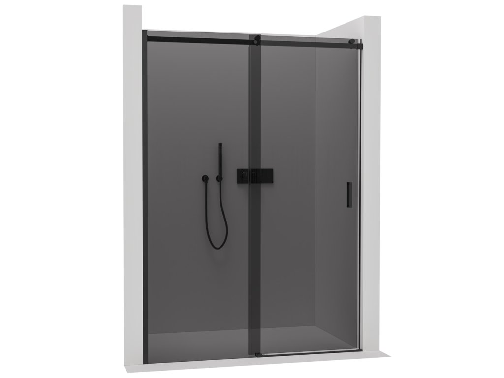 CERANO - Drzwi prysznicowe przesuwne Santoro L/P - 6 mm - matowa czerń, szkło grafitowe - 130x195 cm