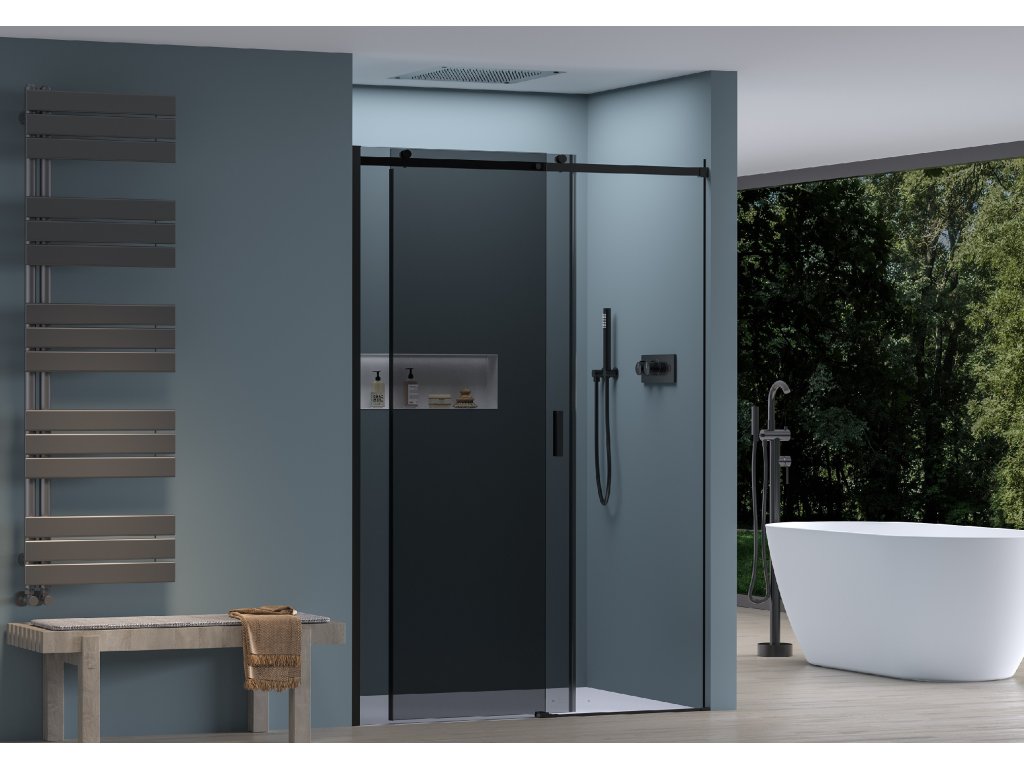 CERANO - Drzwi prysznicowe przesuwne Santoro L/P - 8 mm - matowa czerń, szkło grafitowe - 130x195 cm