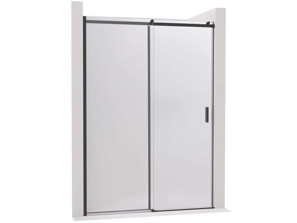 CERANO - Drzwi prysznicowe przesuwne Santoro - lewe - 6 mm - matowa czerń, szkło mrożone - 130x195 cm