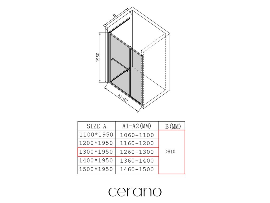 W ramach tej serii oferujemy szeroki wybór wymiarów, aby sprostać zróżnicowanym potrzebom naszych klientów. Wszystkie kabiny prysznicowe, drzwi i parawany CERANO są w pełni kompatybilne z brodzikami CERANO o tych samych wymiarach, co zapewnia bezproblemowy montaż i idealne dopasowanie. Ponadto kabinę można elastycznie zamontować – na pasującym brodziku lub bezpośrednio na podłodze, w zależności od preferencji i wyposażenia łazienki.