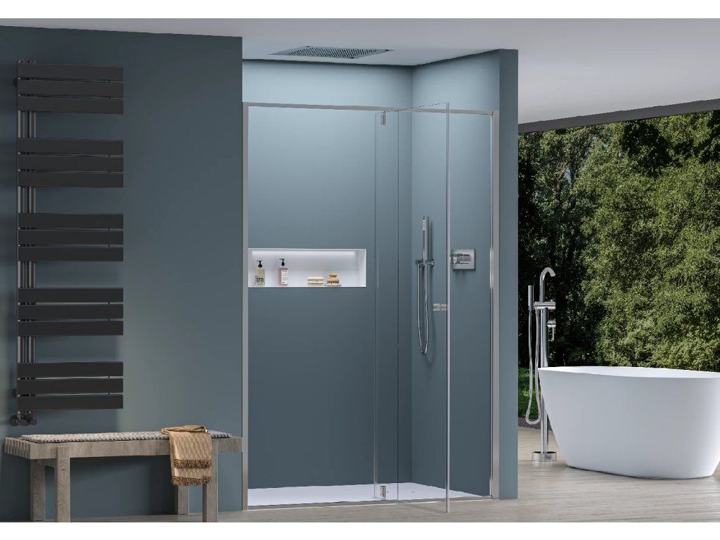 CERANO - Drzwi prysznicowe obrotowe Santini L/R - 6 mm - chrom, szkło przezroczyste - 140x195 cm