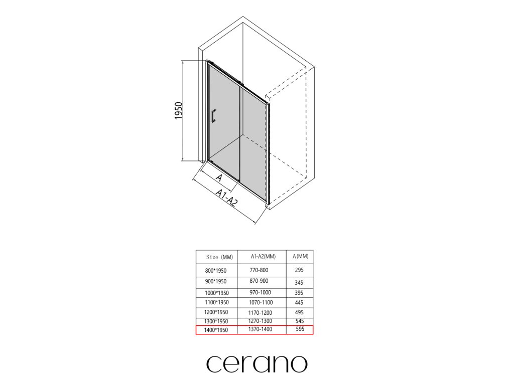 CERANO - Drzwi prysznicowe przesuwne Orlano L/P - 5 mm - matowa czerń, szkło transparentne - 140x195 cm