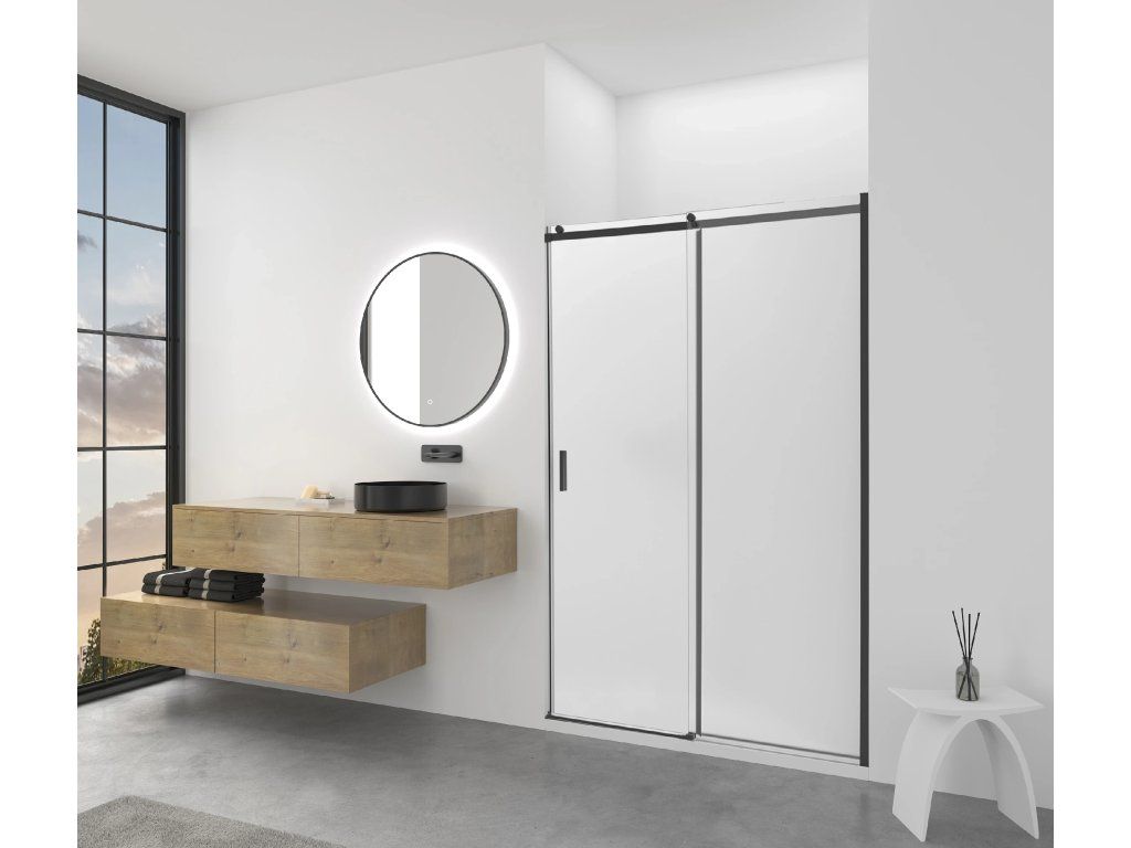 CERANO - Drzwi prysznicowe przesuwne Santoro - prawe - 6 mm - matowa czerń, szkło mrożone - 140x195 cm