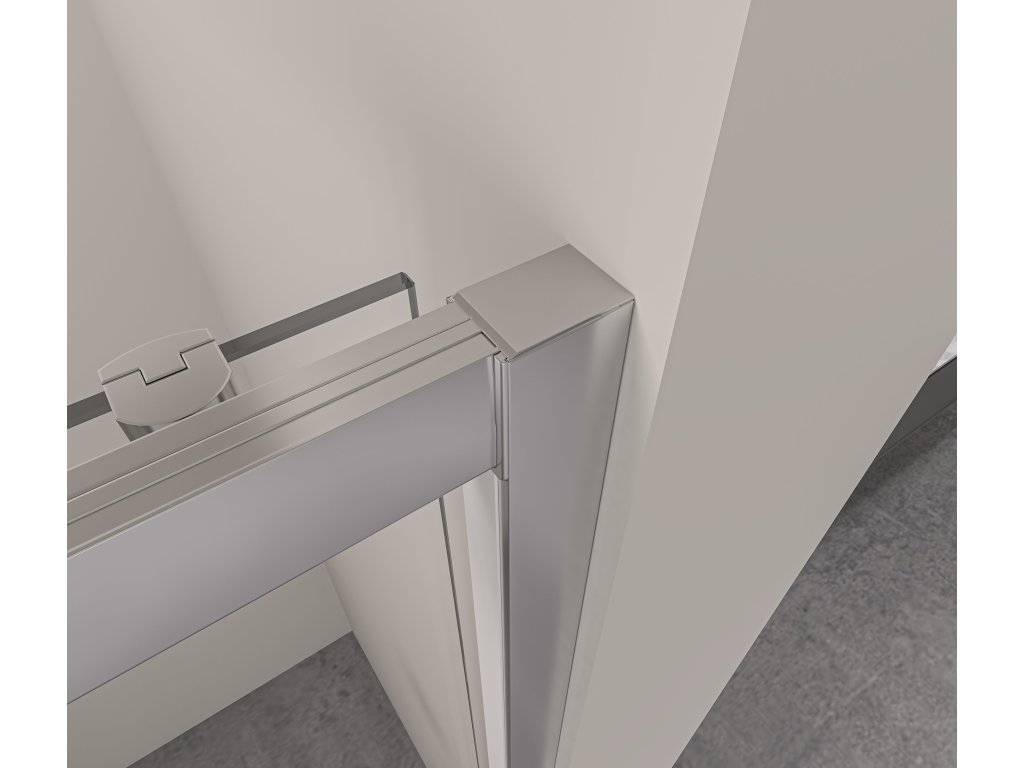 Dzięki regulowanemu profilowi przyściennemu o zakresie do 40 mm można łatwo wyregulować drzwi prysznicowe nawet w przypadku drobnych nierówności ściany lub odchyleń w otworze budowlanym. Ten przemyślany system ułatwia montaż i gwarantuje idealne dopasowanie drzwi. Regulacja dotyczy tylko drzwi – ścianka stała montowana jest w ustalonym wymiarze.