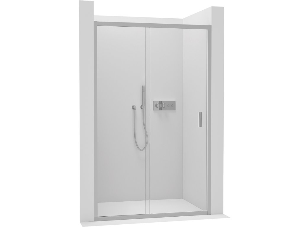 CERANO - Drzwi prysznicowe przesuwne Varone LINE L/R - 6 mm - chrom, szkło transparentne - 140x195 cm