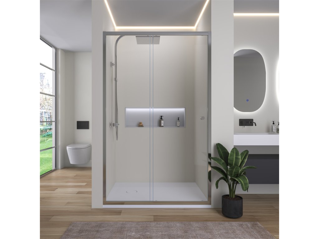 CERANO - Drzwi prysznicowe przesuwne Varone POINT L/R - 6 mm - chrom, szkło transparentne - 140x195 cm