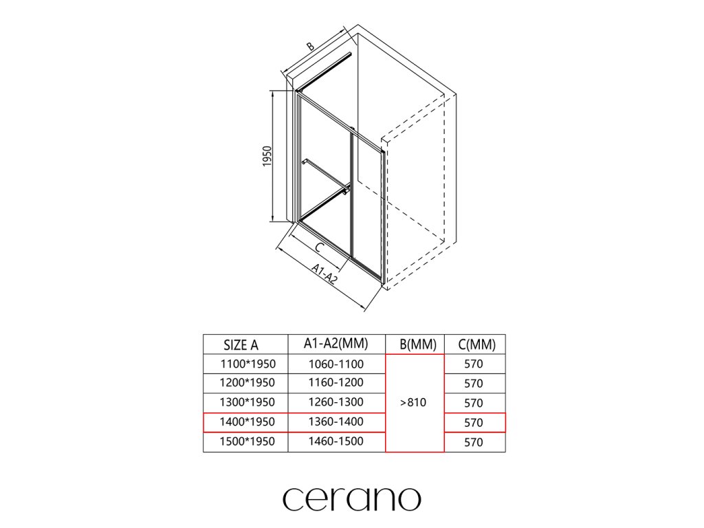W ramach tej serii oferujemy szeroki wybór wymiarów, aby sprostać zróżnicowanym potrzebom naszych klientów. Wszystkie kabiny prysznicowe, drzwi i parawany CERANO są w pełni kompatybilne z brodzikami CERANO o tych samych wymiarach, co zapewnia bezproblemowy montaż i idealne dopasowanie. Ponadto kabinę można elastycznie zamontować – na pasującym brodziku lub bezpośrednio na podłodze, w zależności od preferencji i wyposażenia łazienki.