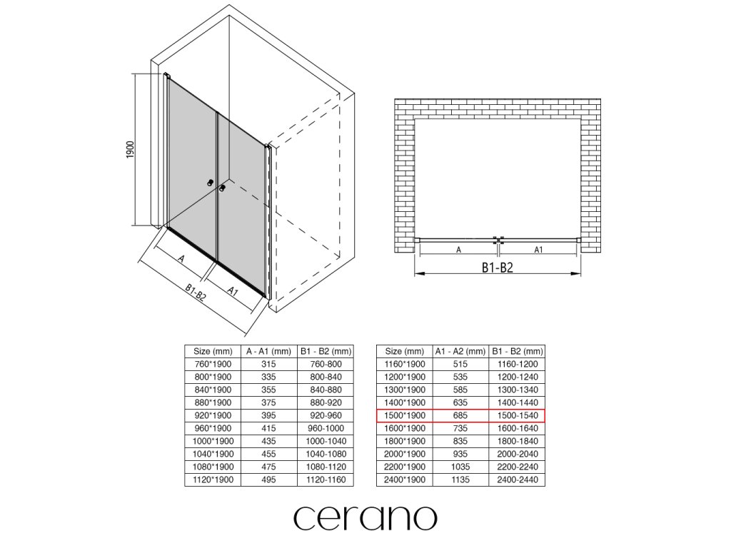 W ramach tej serii oferujemy szeroki wybór wymiarów, aby sprostać zróżnicowanym potrzebom naszych klientów. Wszystkie kabiny prysznicowe, drzwi i parawany CERANO są w pełni kompatybilne z brodzikami CERANO o tych samych wymiarach, co zapewnia bezproblemowy montaż i idealną koordynację.