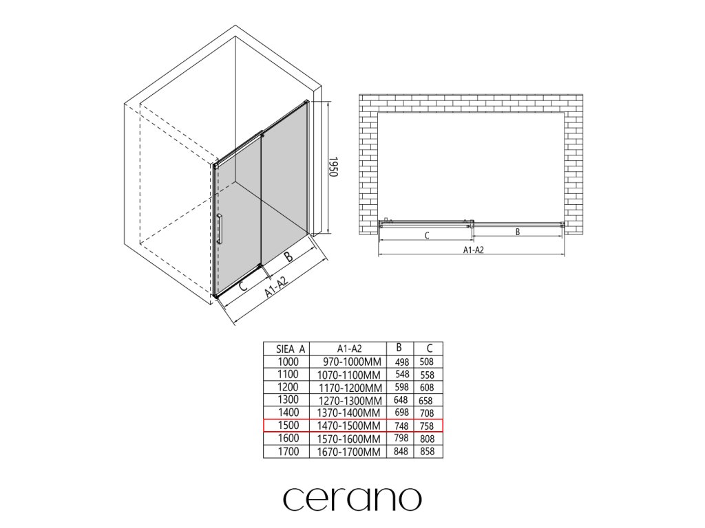 W ramach tej serii oferujemy szeroki wybór wymiarów, aby sprostać zróżnicowanym potrzebom naszych klientów. Wszystkie kabiny prysznicowe, drzwi i parawany CERANO są w pełni kompatybilne z brodzikami CERANO o tych samych wymiarach, co zapewnia bezproblemowy montaż i idealne dopasowanie. Ponadto kabinę można elastycznie zamontować – na pasującym brodziku lub bezpośrednio na podłodze, w zależności od preferencji i wyposażenia łazienki.