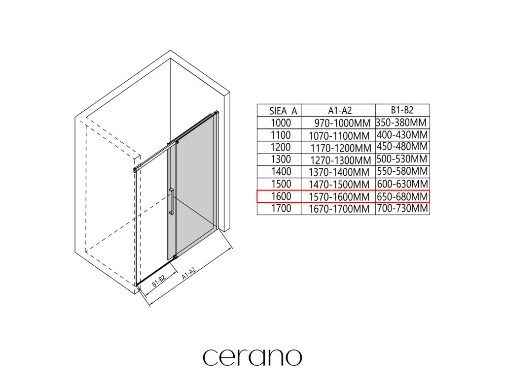 W ramach tej serii oferujemy szeroki wybór wymiarów, aby sprostać zróżnicowanym potrzebom naszych klientów. Wszystkie kabiny prysznicowe, drzwi i parawany CERANO są w pełni kompatybilne z brodzikami CERANO o tych samych wymiarach, co zapewnia bezproblemowy montaż i idealne dopasowanie. Ponadto kabinę można elastycznie zamontować – na pasującym brodziku lub bezpośrednio na podłodze, w zależności od preferencji i wyposażenia łazienki.