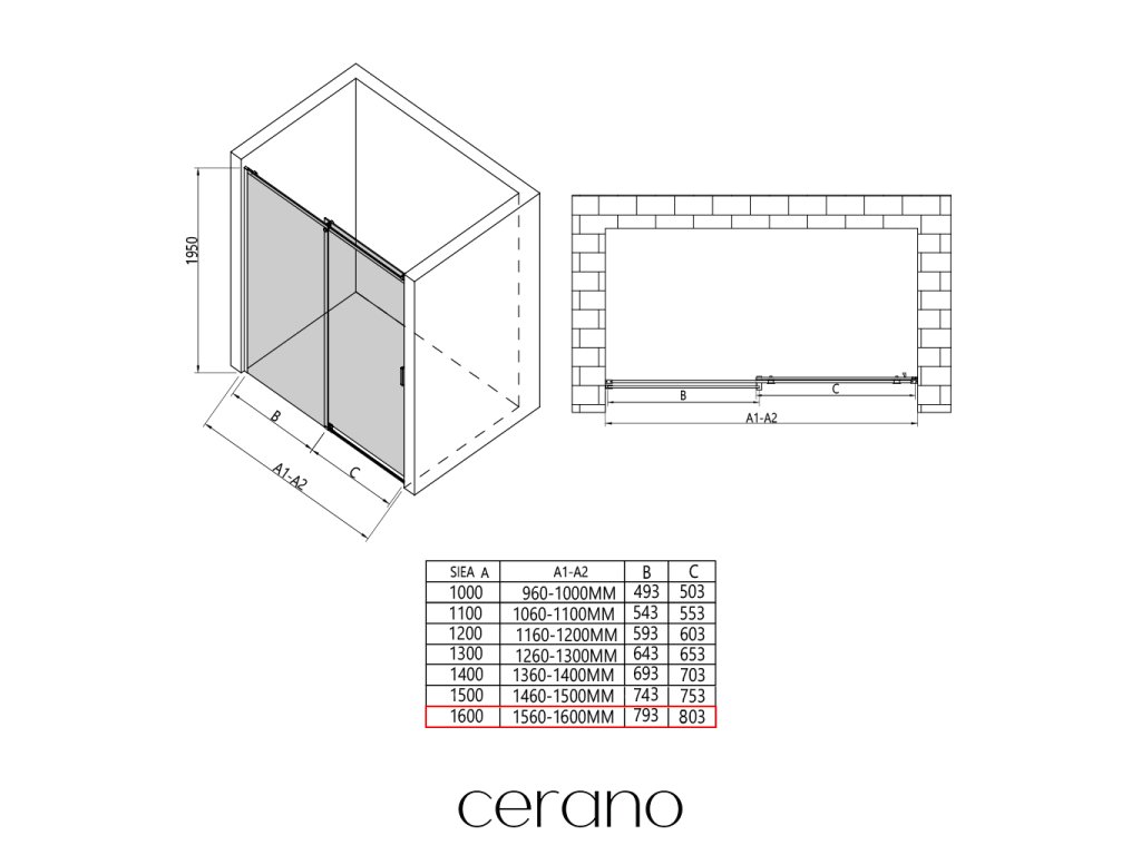 W ramach tej serii oferujemy szeroki wybór wymiarów, aby sprostać zróżnicowanym potrzebom naszych klientów. Wszystkie kabiny prysznicowe, drzwi i parawany CERANO są w pełni kompatybilne z brodzikami CERANO o tych samych wymiarach, co zapewnia bezproblemowy montaż i idealne dopasowanie. Ponadto kabinę można elastycznie zamontować – na pasującym brodziku lub bezpośrednio na podłodze, w zależności od preferencji i wyposażenia łazienki.