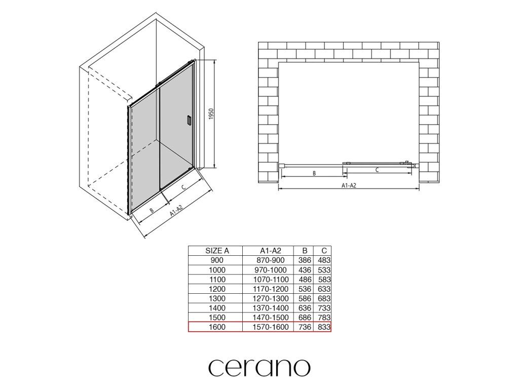 W ramach tej serii oferujemy szeroki wybór wymiarów, aby sprostać zróżnicowanym potrzebom naszych klientów. Wszystkie kabiny prysznicowe, drzwi i parawany CERANO są w pełni kompatybilne z brodzikami CERANO o tych samych wymiarach, co zapewnia bezproblemowy montaż i idealne dopasowanie. Ponadto kabinę można elastycznie zamontować – na pasującym brodziku lub bezpośrednio na podłodze, w zależności od preferencji i wyposażenia łazienki.