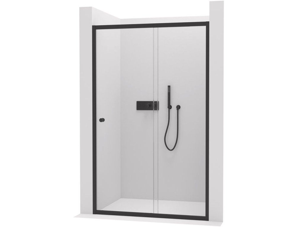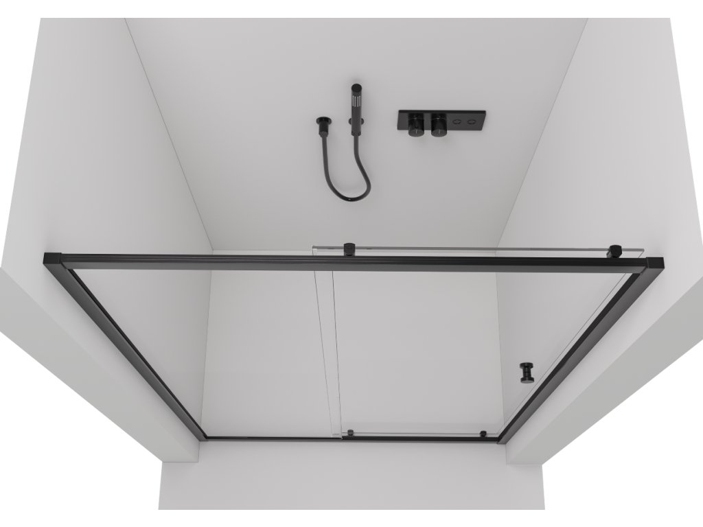 CERANO - Drzwi prysznicowe przesuwne Varone POINT L/P - 6 mm - matowa czerń, szkło transparentne - 160x195 cm