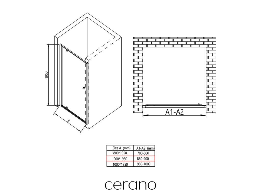 W ramach tej serii oferujemy szeroki wybór wymiarów, aby sprostać zróżnicowanym potrzebom naszych klientów. Wszystkie kabiny prysznicowe, drzwi i parawany CERANO są w pełni kompatybilne z brodzikami CERANO o tych samych wymiarach, co zapewnia bezproblemowy montaż i idealne dopasowanie. Ponadto kabinę można elastycznie zamontować – na pasującym brodziku lub bezpośrednio na podłodze, w zależności od preferencji i wyposażenia łazienki.
