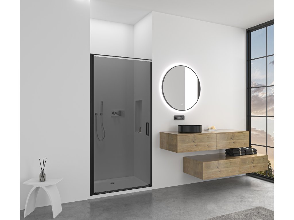 CERANO - Drzwi prysznicowe zawiasowe Porte L/R - 8 mm - matowa czerń, szkło grafitowe - 90x195 cm