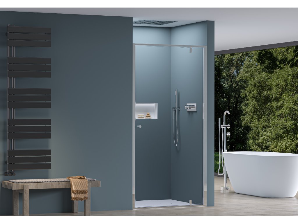 Drzwi prysznicowe są osadzone na zawiasach, a oś obrotu jest przesunięta od krawędzi drzwi na zewnątrz, co ułatwia ich otwieranie. To rozwiązanie wymaga miejsca na pełne otwarcie drzwi, co należy uwzględnić podczas planowania. Drzwi obrotowe są również dobrym wyborem do większych łazienek, ponieważ dzięki takiej konstrukcji można zastosować drzwi o większych rozmiarach.