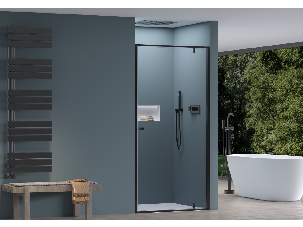Drzwi prysznicowe są osadzone na zawiasach, a oś obrotu jest przesunięta od krawędzi drzwi na zewnątrz, co ułatwia ich otwieranie. To rozwiązanie wymaga miejsca na pełne otwarcie drzwi, co należy uwzględnić podczas planowania. Drzwi obrotowe są również dobrym wyborem do większych łazienek, ponieważ dzięki takiej konstrukcji można zastosować drzwi o większych rozmiarach.