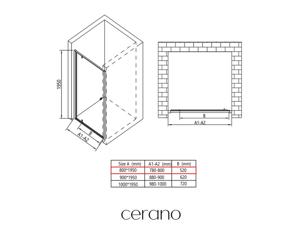 W ramach tej serii oferujemy szeroki wybór wymiarów, aby sprostać zróżnicowanym potrzebom naszych klientów. Wszystkie kabiny prysznicowe, drzwi i parawany CERANO są w pełni kompatybilne z brodzikami CERANO o tych samych wymiarach, co zapewnia bezproblemowy montaż i idealne dopasowanie. Ponadto kabinę można elastycznie zamontować – na pasującym brodziku lub bezpośrednio na podłodze, w zależności od preferencji i wyposażenia łazienki.