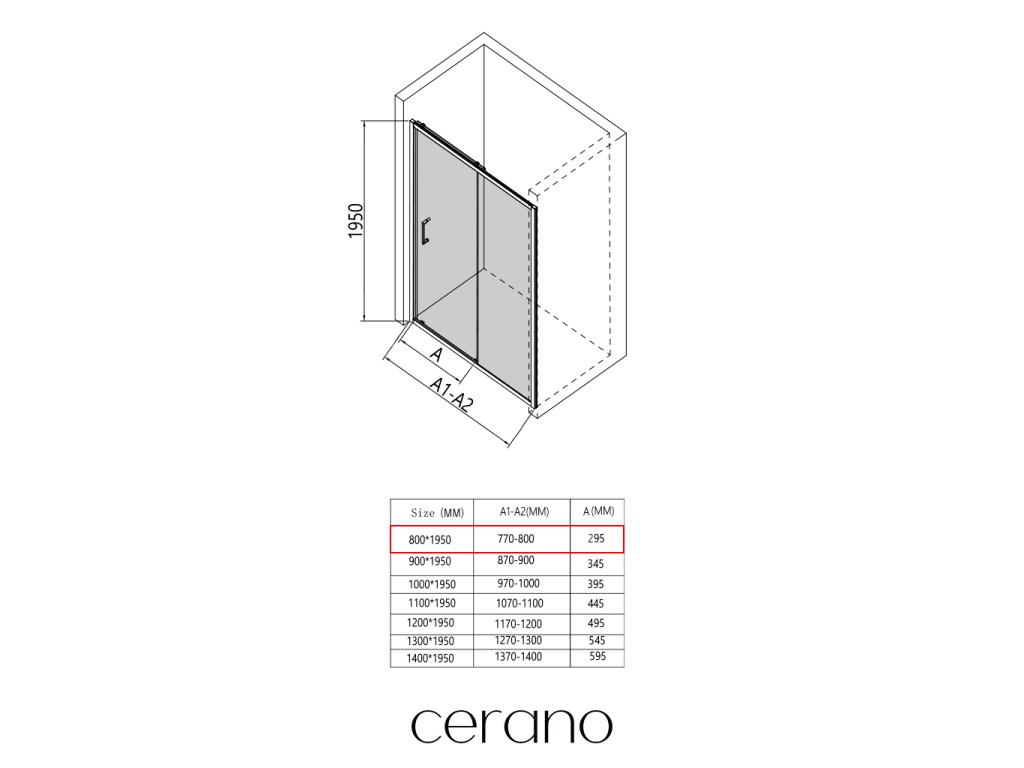 CERANO - Drzwi prysznicowe przesuwne Orlano L/P - 5 mm - matowa czerń, szkło transparentne - 80x195 cm