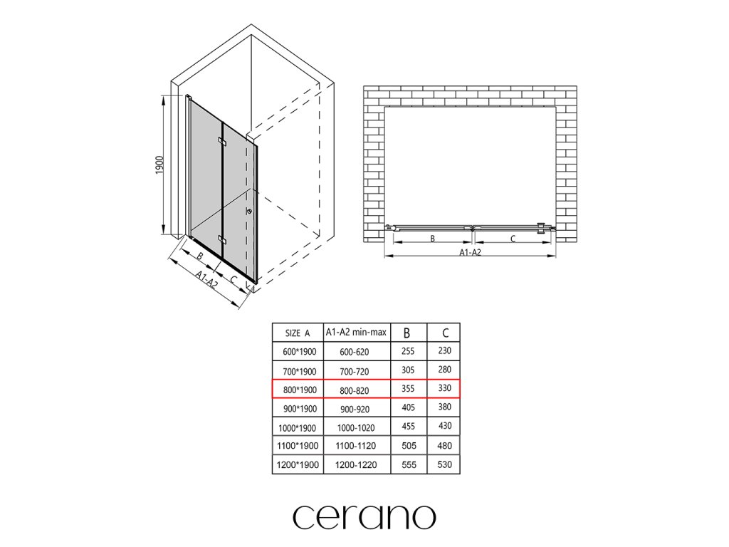 W ramach tej serii oferujemy szeroki wybór wymiarów, aby sprostać zróżnicowanym potrzebom naszych klientów. Wszystkie kabiny prysznicowe, drzwi i parawany Cerano są w pełni kompatybilne z brodzikami Cerano o tych samych wymiarach, co zapewnia bezproblemowy montaż i idealne dopasowanie. Ponadto kabinę prysznicową można elastycznie zamontować – na pasującym brodziku lub bezpośrednio na podłodze, w zależności od preferencji i wyposażenia łazienki.