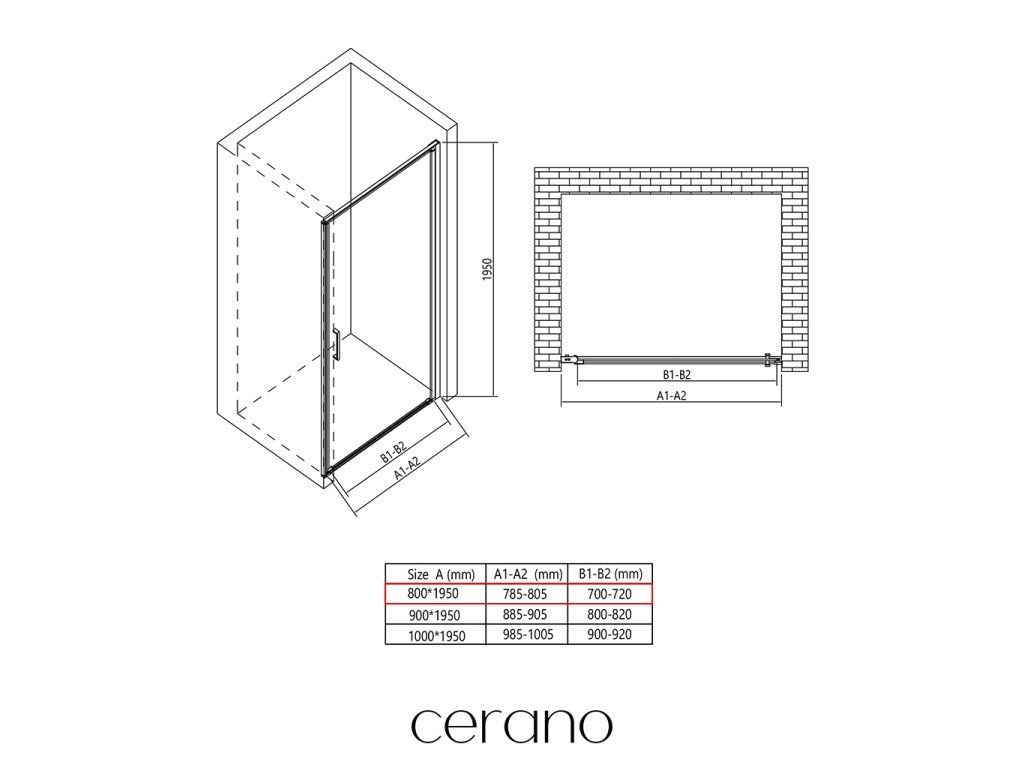 W ramach tej serii oferujemy szeroki wybór wymiarów, aby sprostać zróżnicowanym potrzebom naszych klientów. Wszystkie kabiny prysznicowe, drzwi i parawany CERANO są w pełni kompatybilne z brodzikami CERANO o tych samych wymiarach, co zapewnia bezproblemowy montaż i idealne dopasowanie. Ponadto kabinę można elastycznie zamontować – na pasującym brodziku lub bezpośrednio na podłodze, w zależności od preferencji i wyposażenia łazienki.